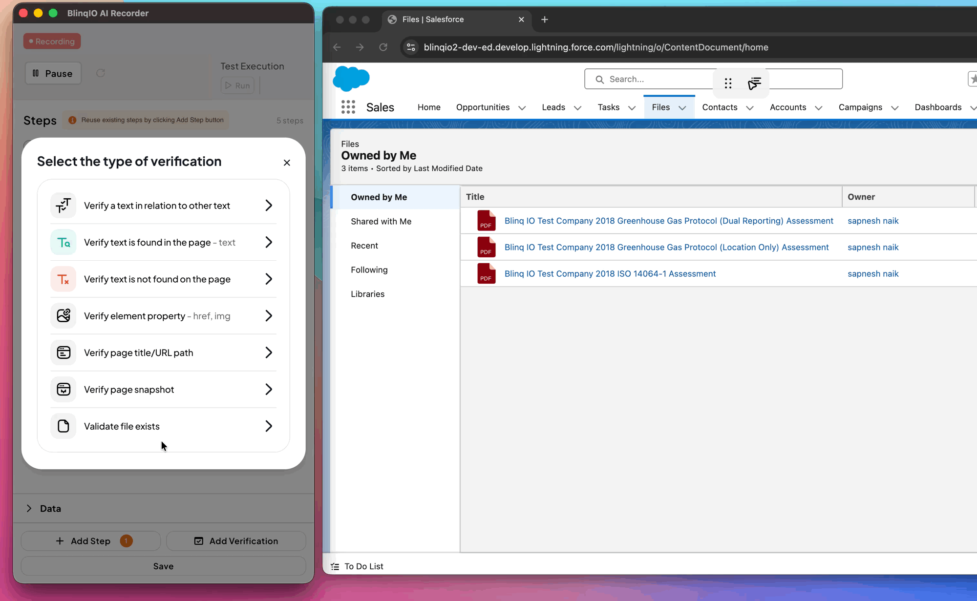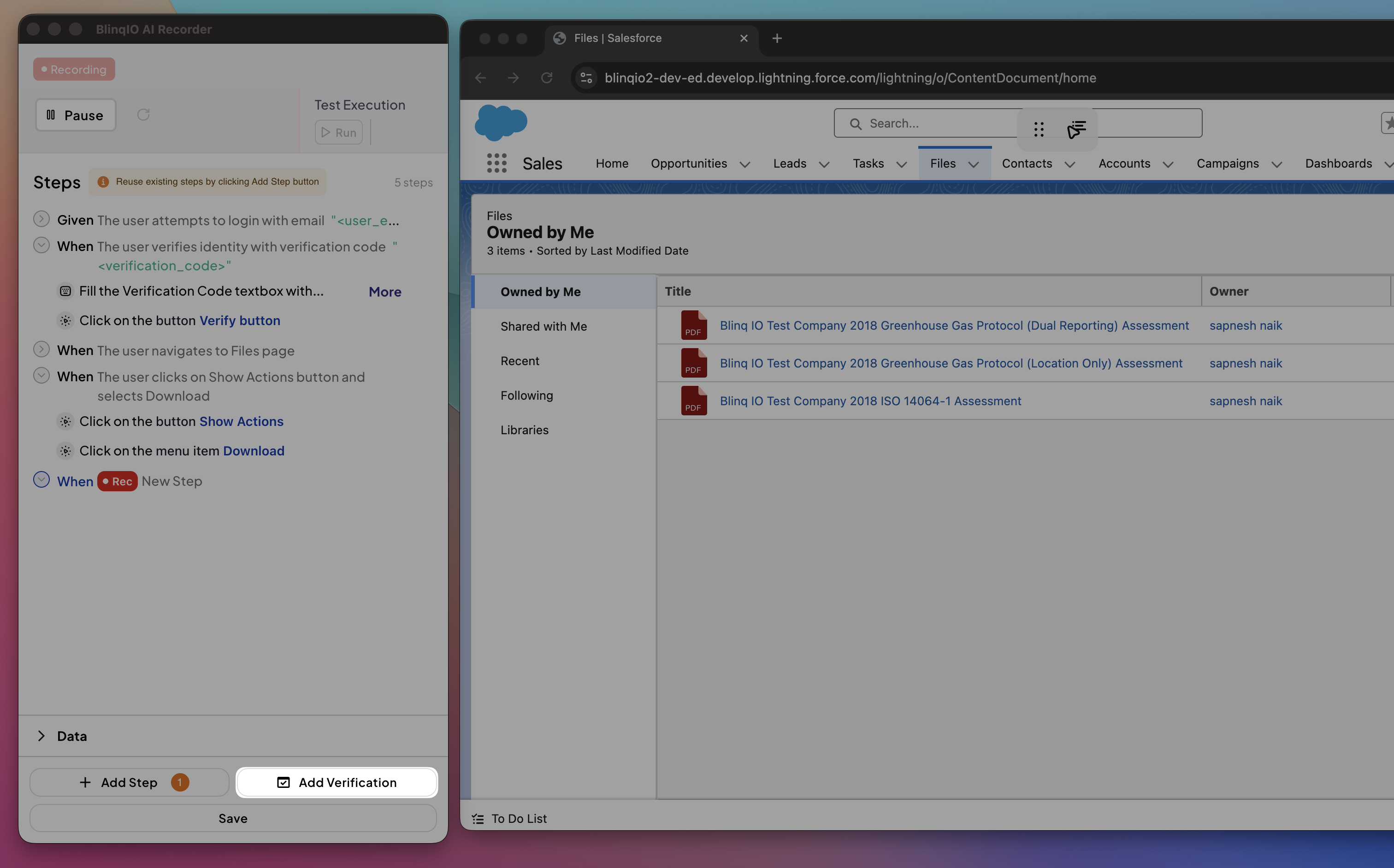 In the Recorder, click Add a Verification Step.