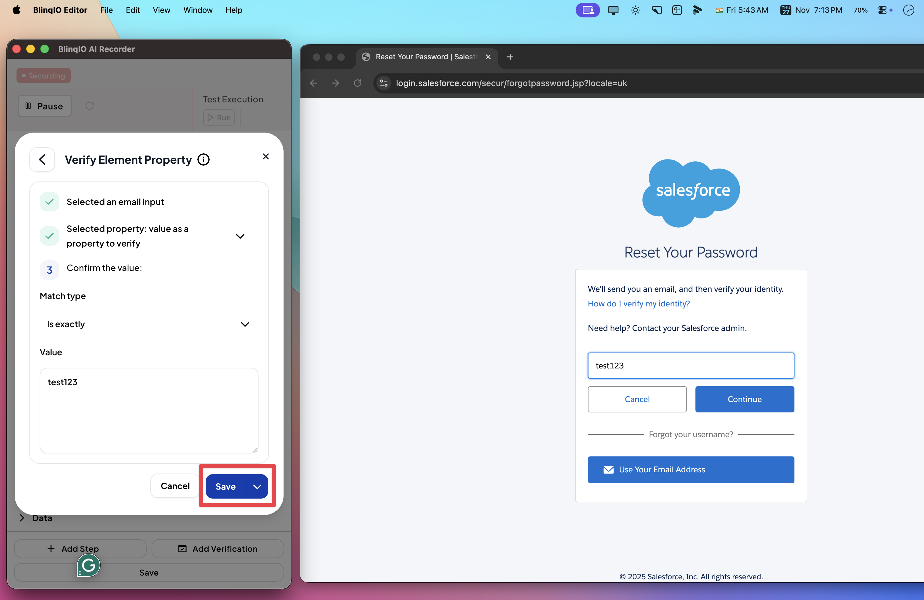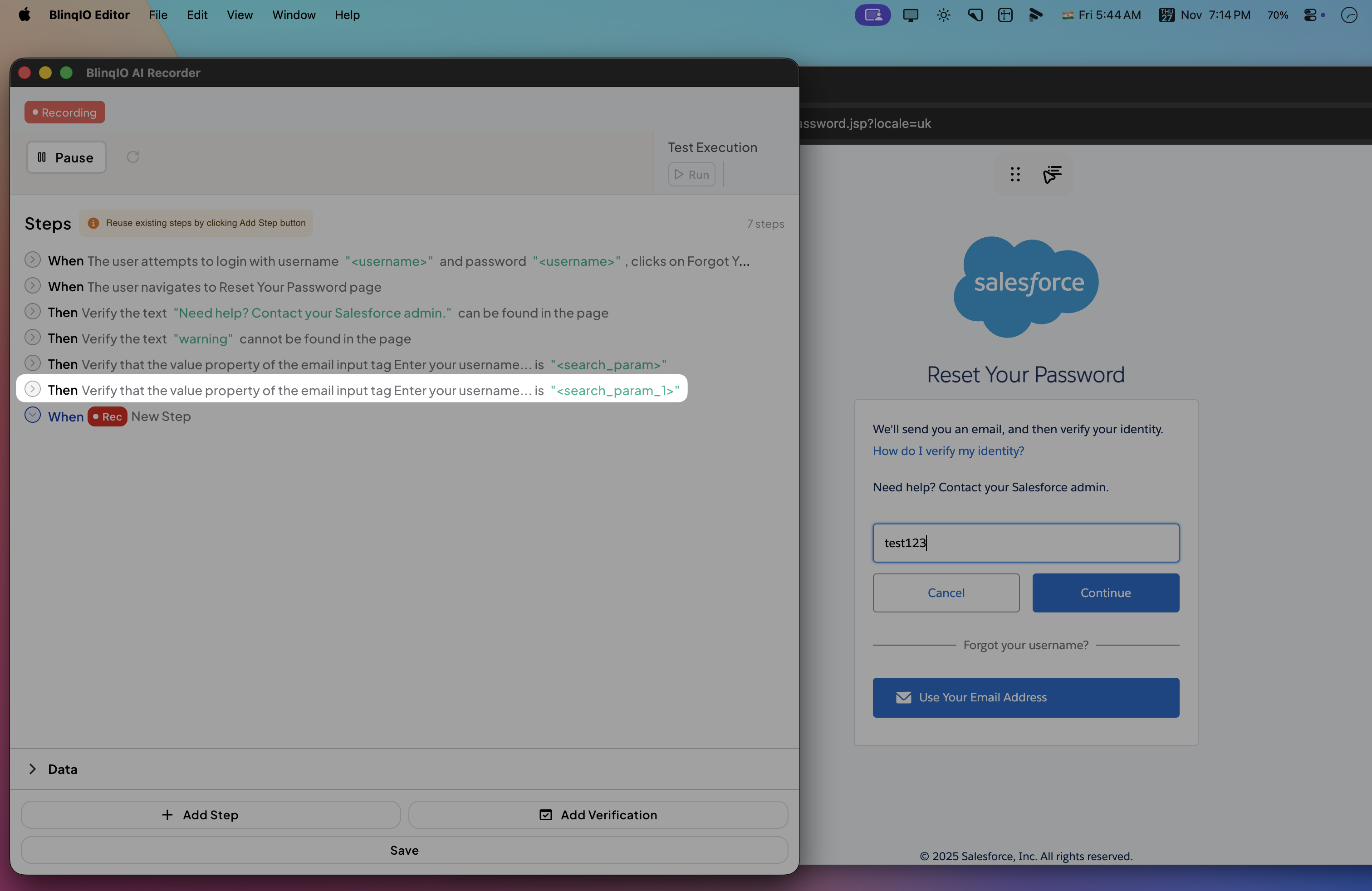 Use the Verify Element Property step to check a specific HTML attribute of an element. This ensures that the element has the correct value during test execution. Typical examples include confirming the href of a link, the src of an image, or the placeholder of an input field.