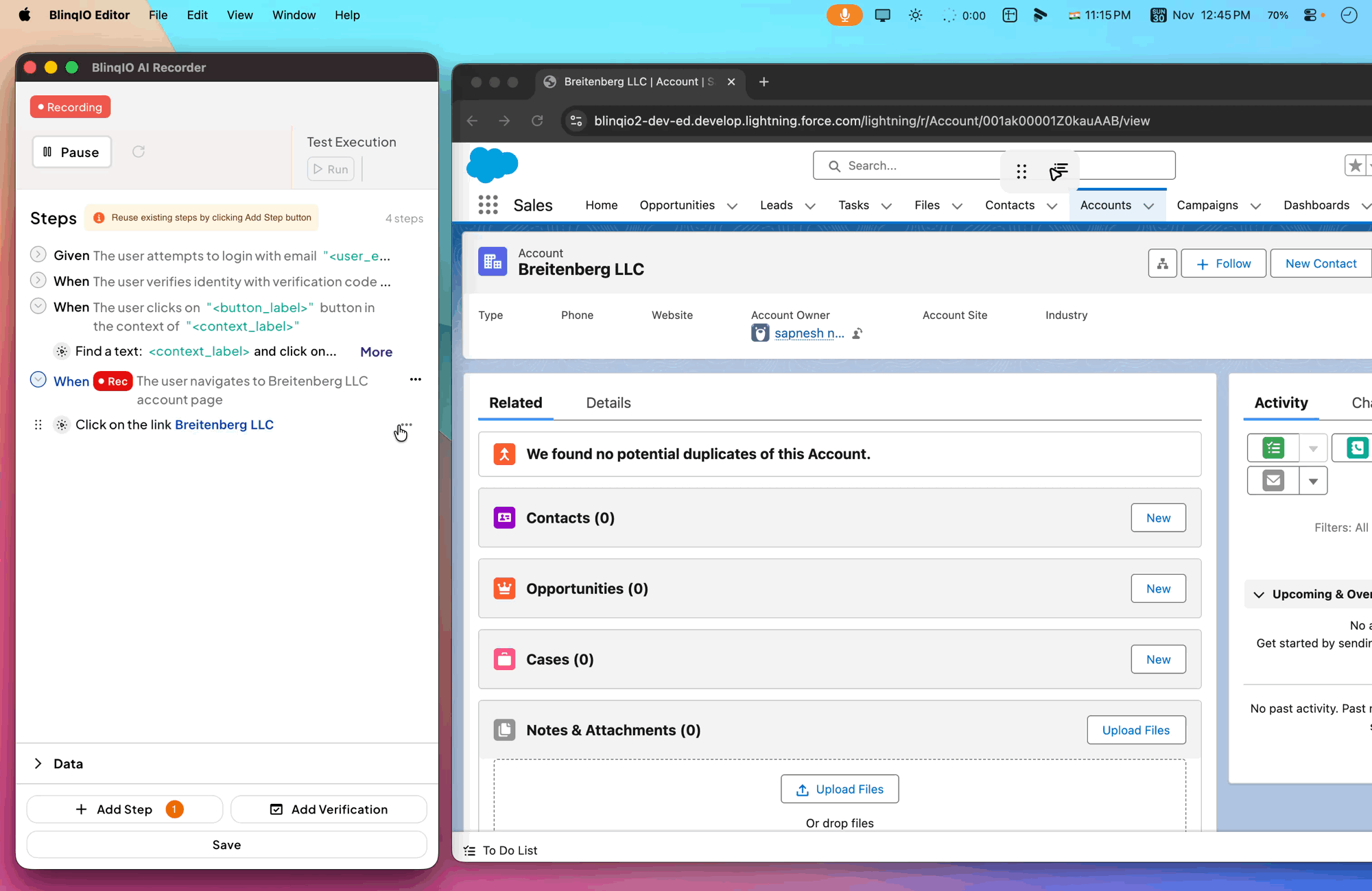Example: Use clickText = "Analytics". Change it to clickText = "Reports" to test the Reports section.