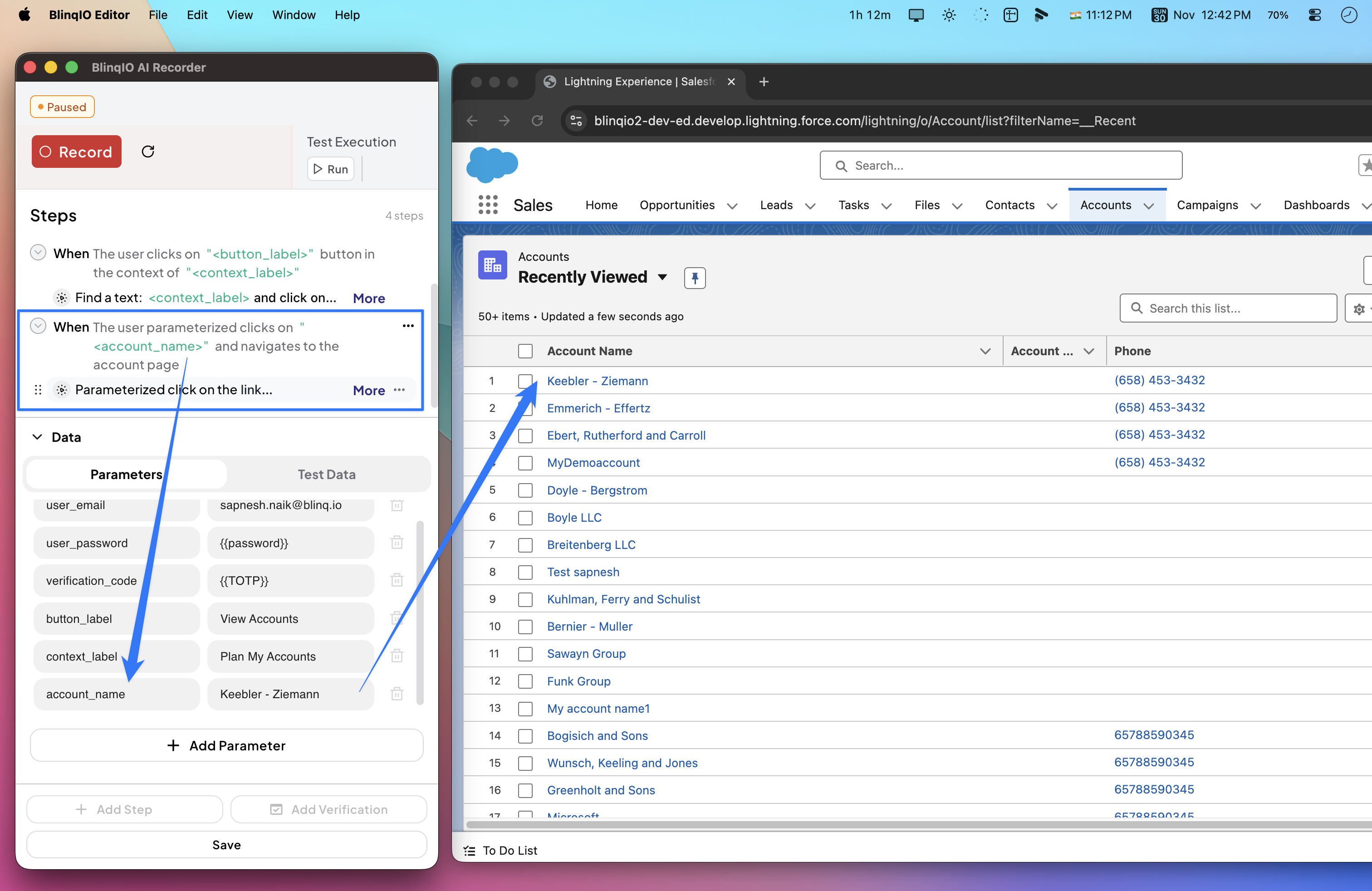 Use parameterized clicks to keep your scenarios flexible. Instead of recording multiple steps, change a single parameter value to test different elements.