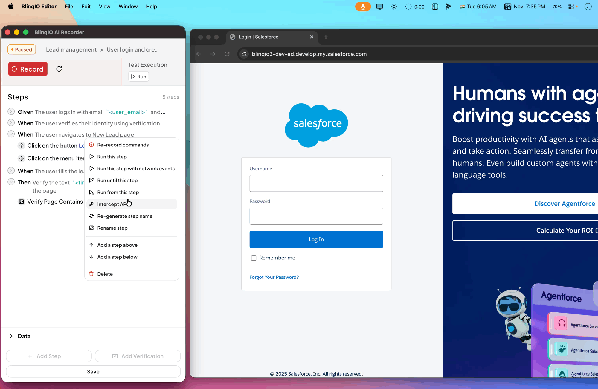 You record a login and checkout flow. Use Run End-to-End to verify that logging in, adding items to the cart, and completing the order work as expected.